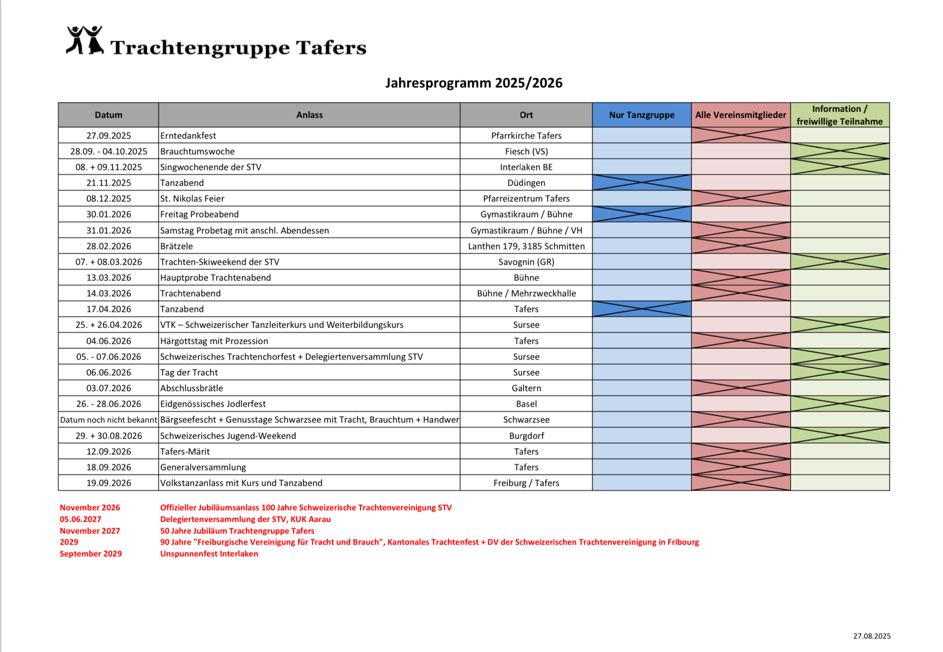 Jahresprogramm 2025 / 2026 Unter folgendem Link ist das Jahresprogramm der Trachtengruppe ersichtlich: Jahresprogramm 2025 2026